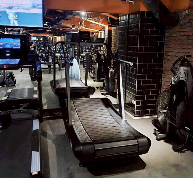 PROGYM的無動力跑步機附有專業感應儀表,可即時追蹤時間、距離、速度與消耗熱量,讓教練及學員們都能精準掌握訓練數據。