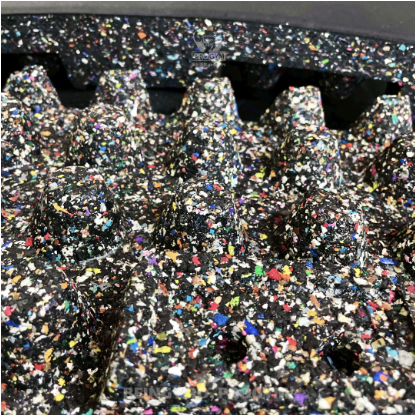 PROGYM 的 5cm 地墊表面採高密度壓縮橡膠,腳感是「紮實有回彈」,而非像泡棉般凹陷。這種硬度能提供足夠的支撐力,防止跑步時因表面不穩造成扭傷。