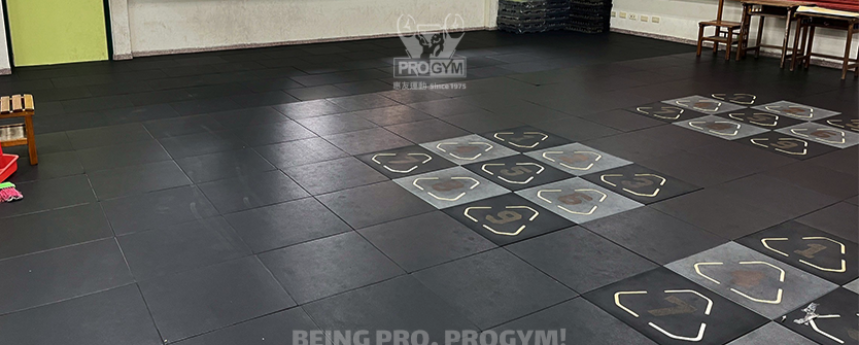 選用專用防焰地墊,考慮到小學生體能發展活躍,安全防護等級必須優於一般健身房。
