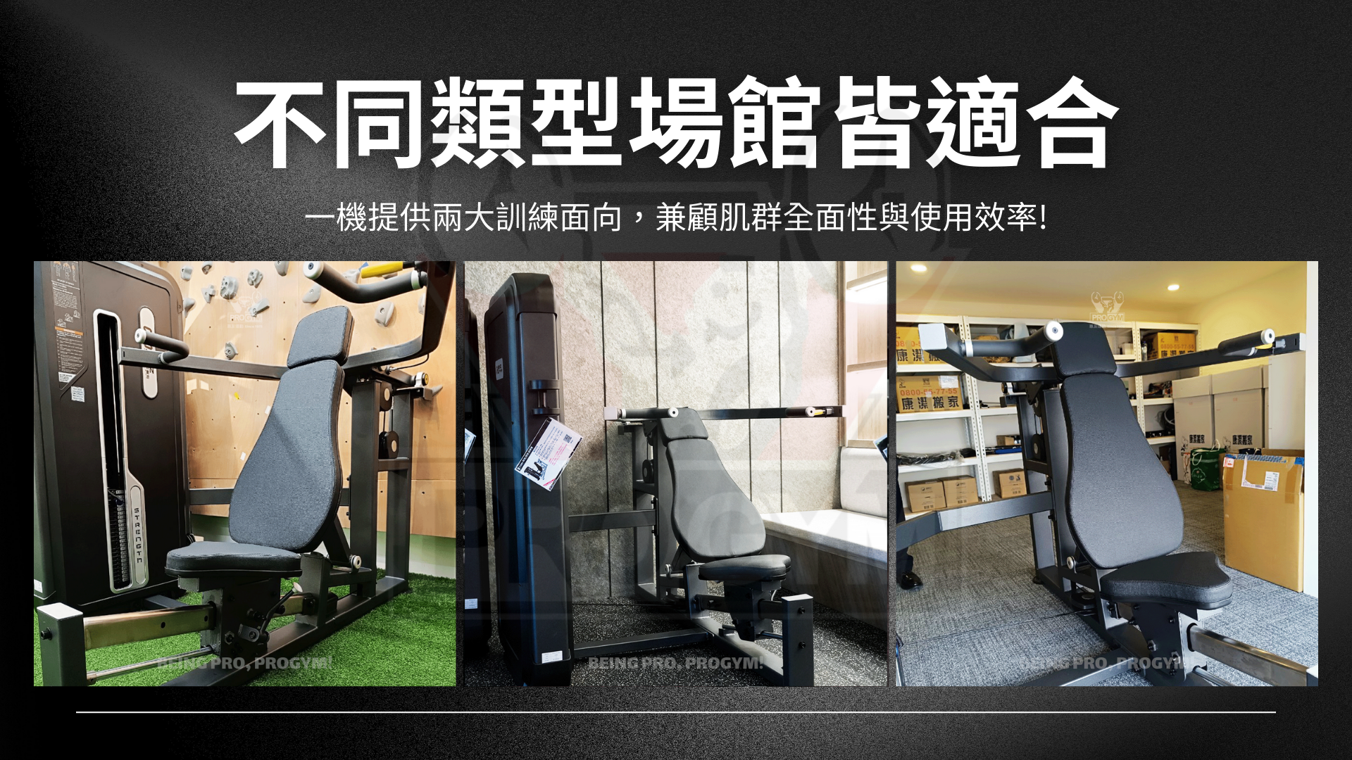 以單機整合多種動作,節省場館空間,適合健身房、工作室或企業健身角落。
