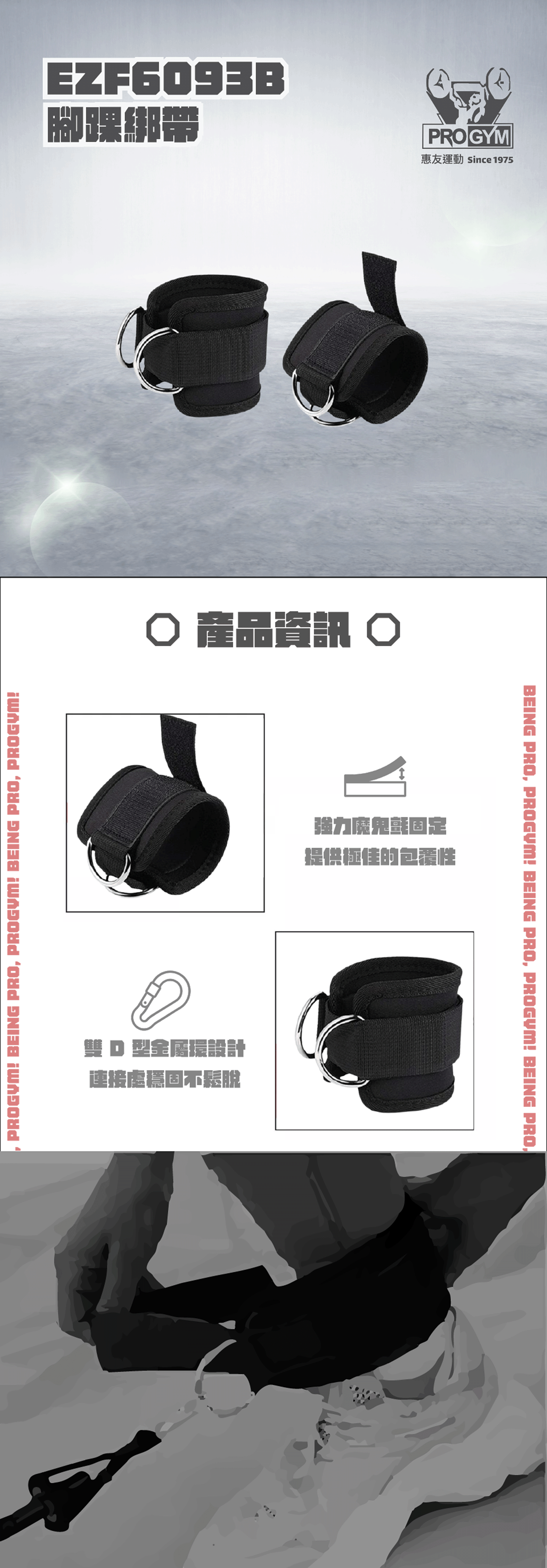 -雙 D 型金屬環設計: 採用高強度不鏽鋼雙環設計,確保力量均勻分散,即便在進行大重量訓練時,連接處依然穩固不鬆脫。